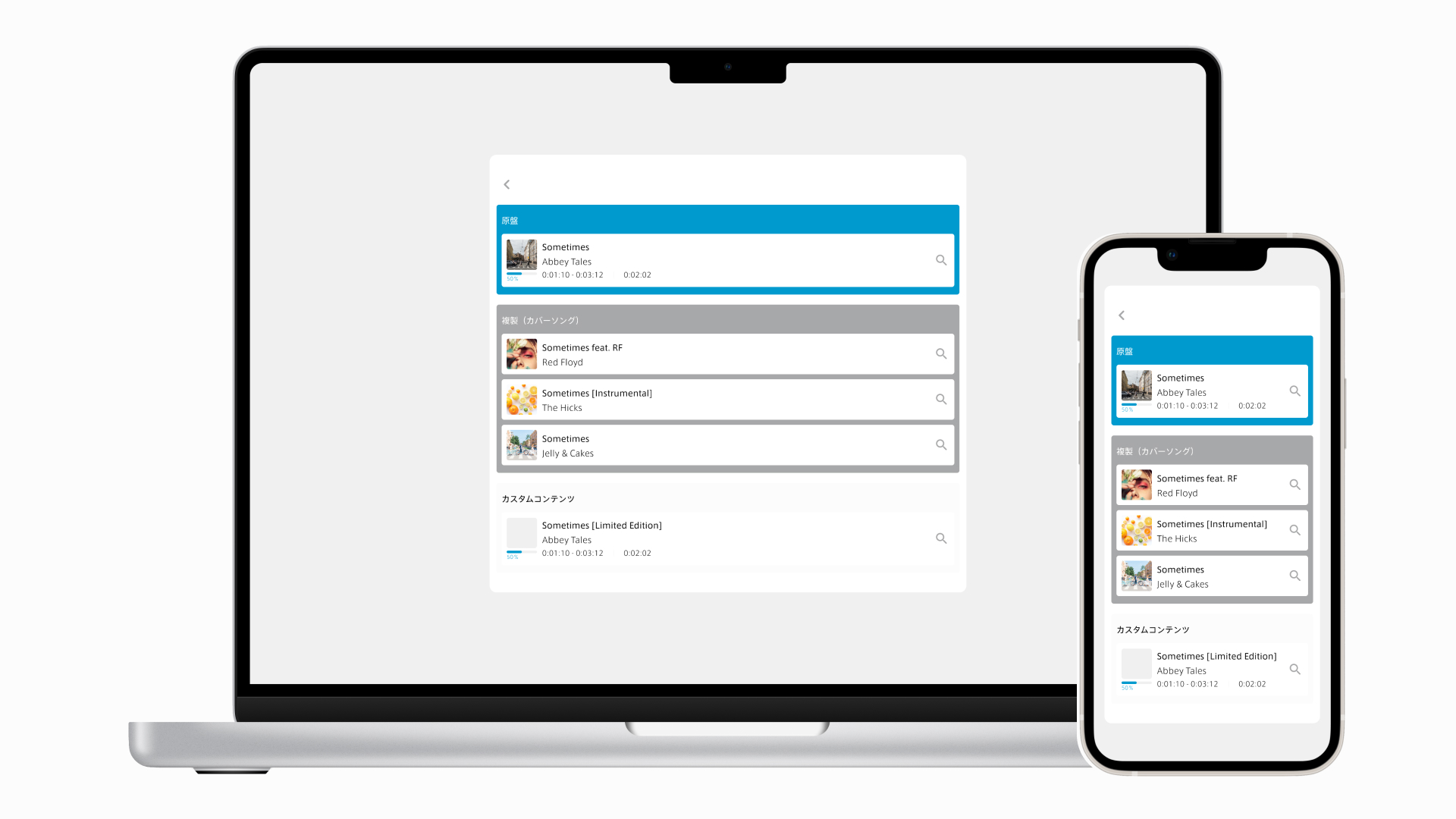 アルバムもホバーで再生できるよう、操作を統一しました。