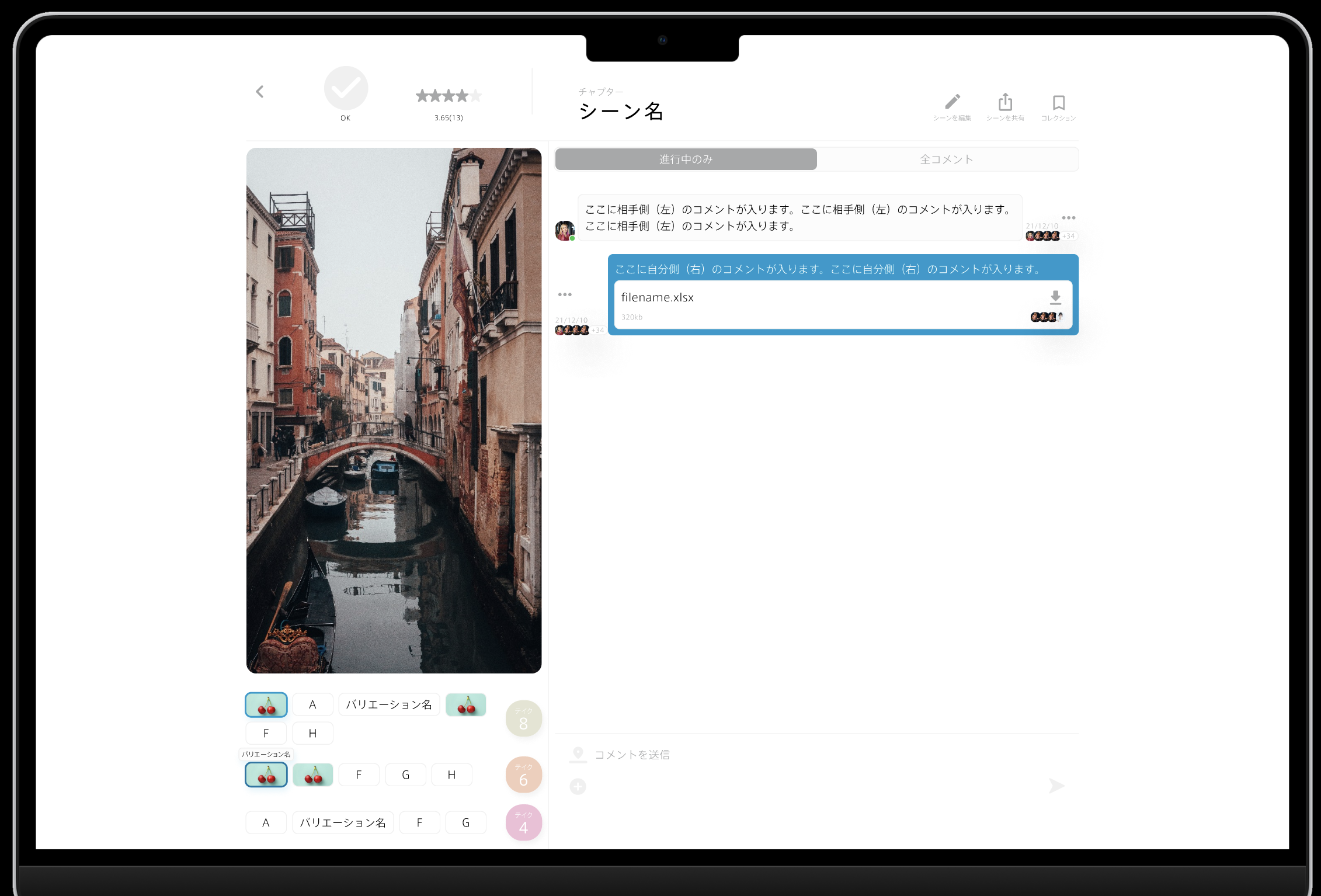 テイクアイコンの選択状態が保存可能に。ディレクターがオーナーに見せたいテイクだけを選んでおくことで、オーナーの判断をスムーズにします。