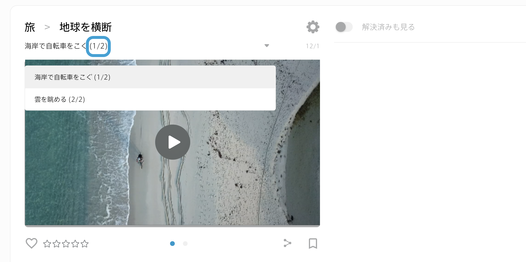 シーン詳細画面のバリエーション、全体数がわかるよう、(1/2)など数字表示を追加しました。