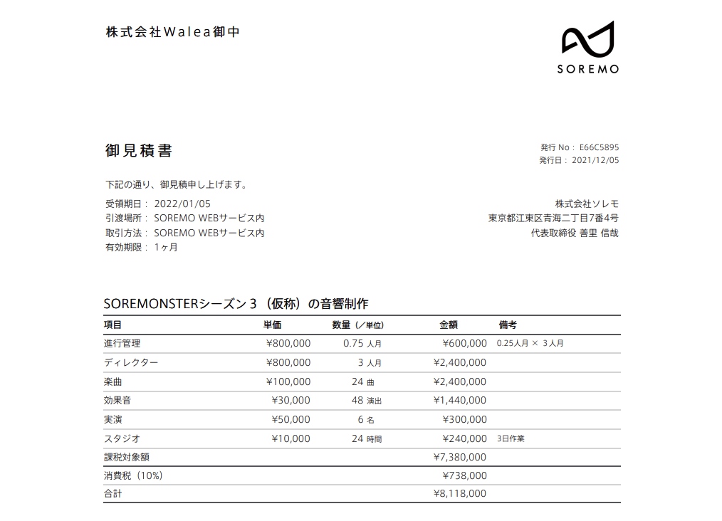 見積書作成。