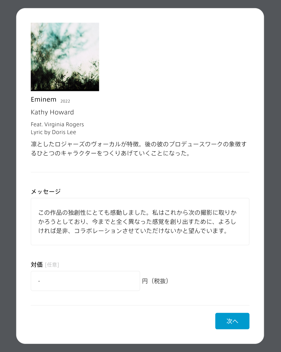 プロフィールサイトからのお問い合わせは、アーティストご自身で直接取引もできるようになりました。利用設定で「マッチングスタイル」を選択すると、お問い合わせ内容が直接アーティストに届きます。