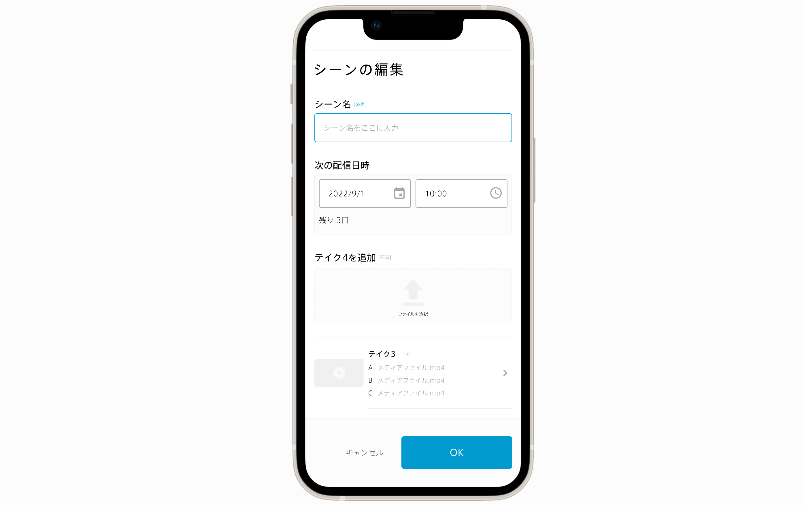 シーン編集画面で、バージョンとバリエーションの混乱を解消するため、バージョンの名称をテイクに変更し、番号が自動で割り振られるようにしました。