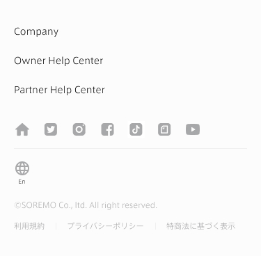 Footerが刷新され、自由にカスタマイズできるようになりました。言語切り替えボタンが加わり、メニューも自由にリンクを作成でき、コピーライトの表記もコントロールできます。選べるアイコンも増えました。