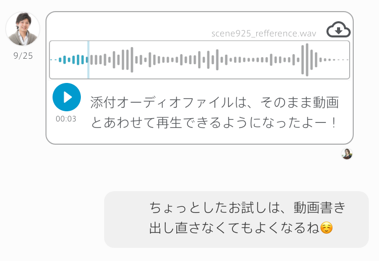 「ファイルを送る」でオーディオを添付したときも波形表示と再生ボタンを追加しました。